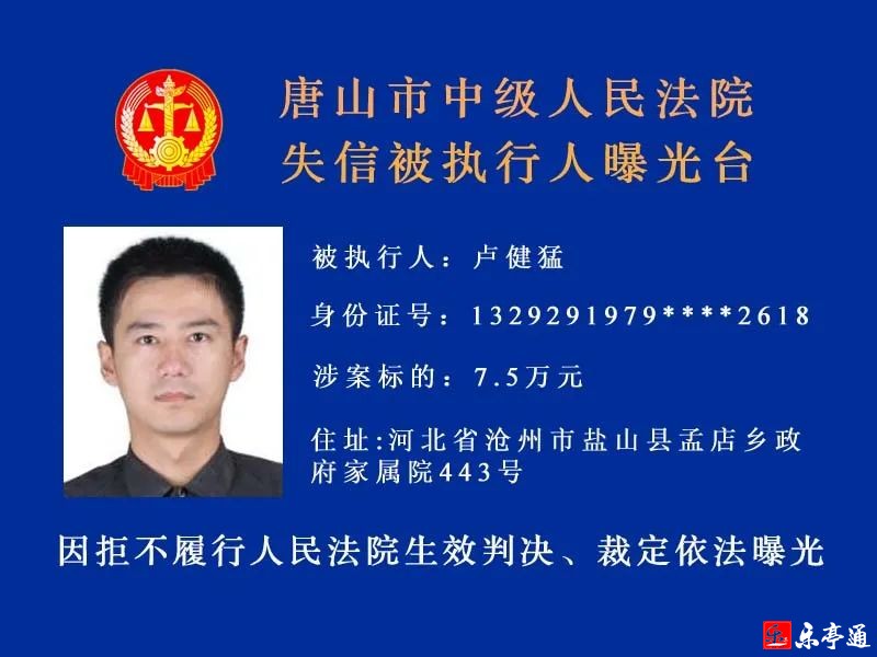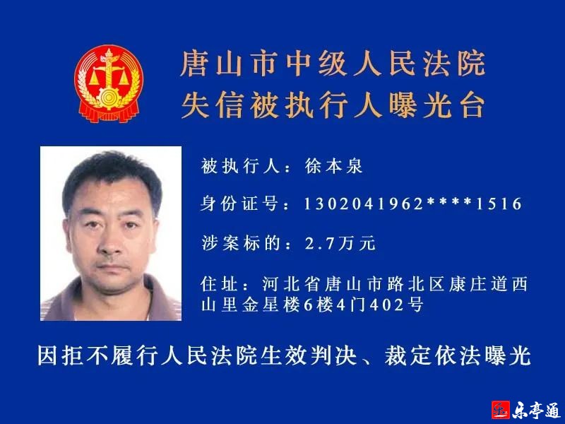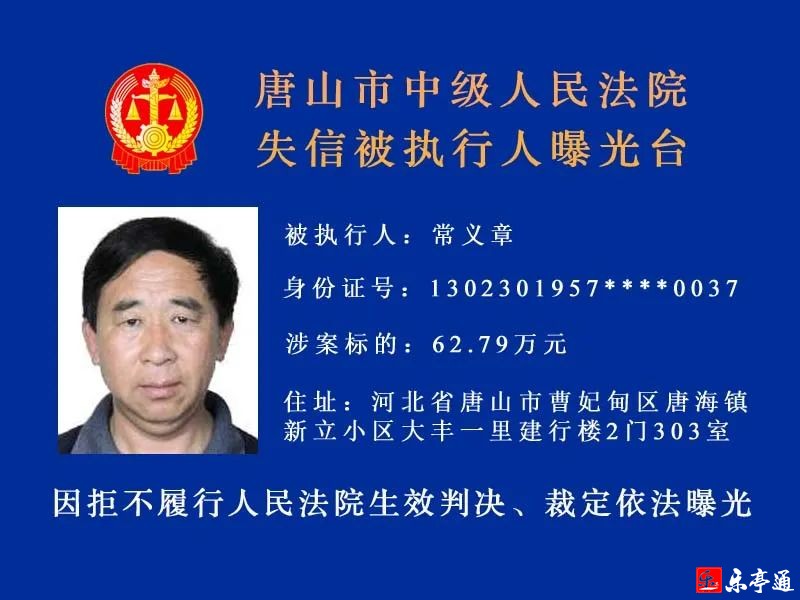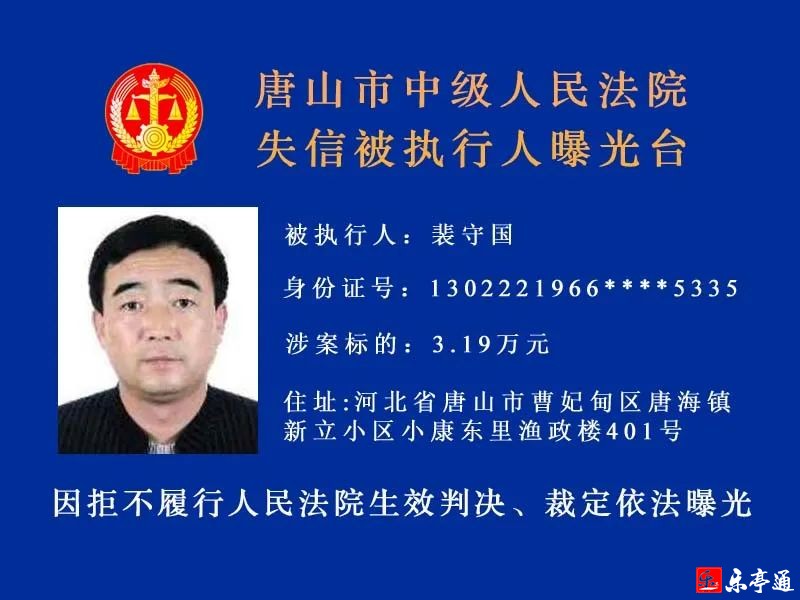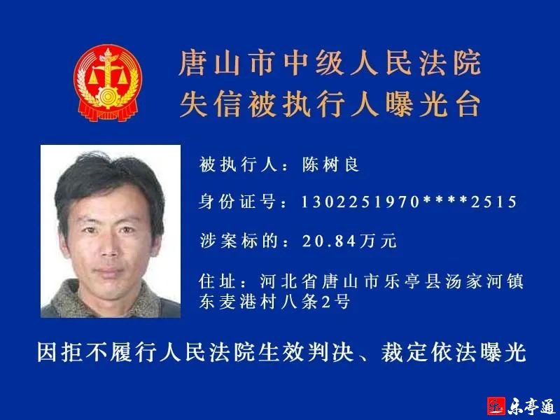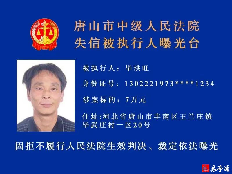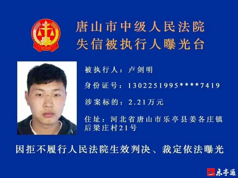 新一批“老赖”被曝光,乐亭2人上榜,快看看你认识他吗
