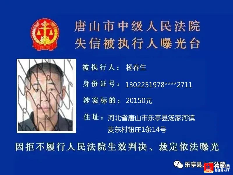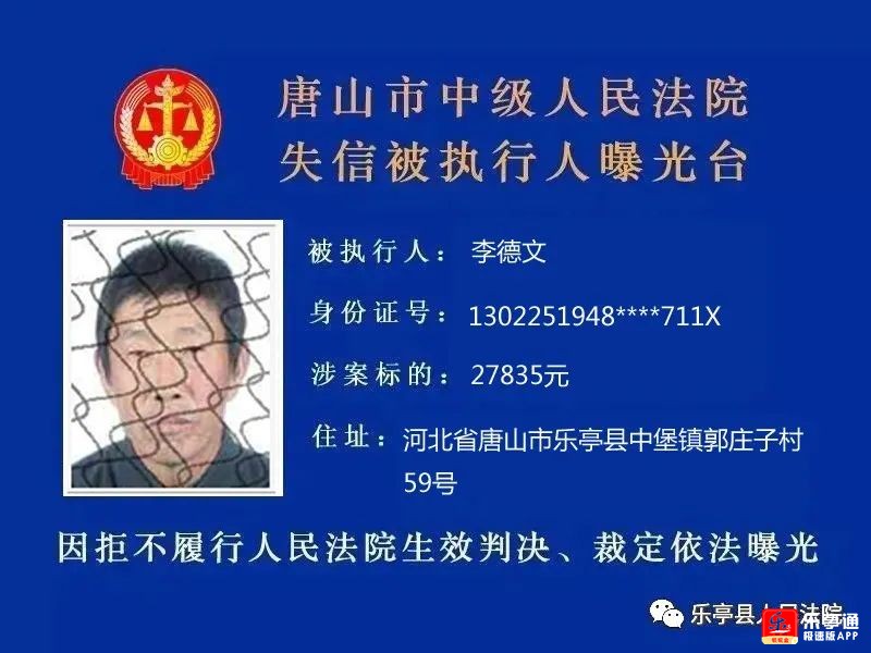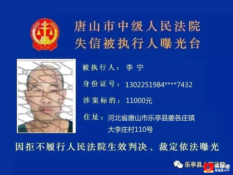 7人!乐亭执行大队失信被执行人名单曝光!