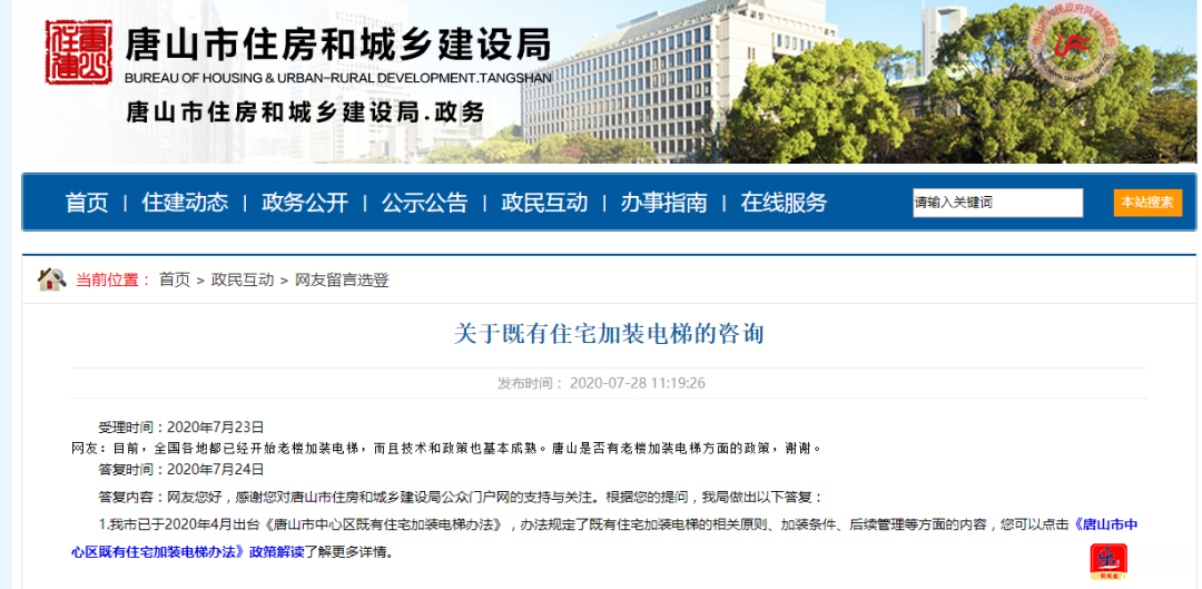 唐山市住建局就答复了网友的问题