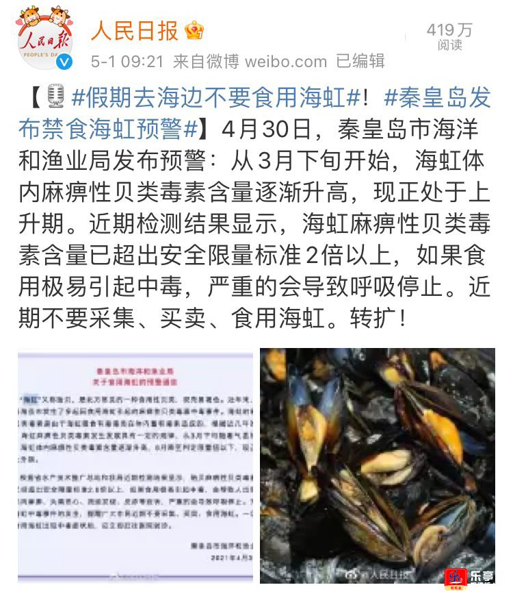近期千万不要食用海虹!