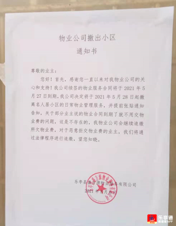 速看!乐亭某小区物业公司撤出,是你家吗?原因对外公布