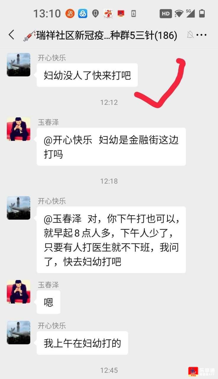 这里是河北乐亭,今天大钊故乡新一轮疫苗接种开始了,各接种点情况不同,有的排队很长,有的人数较少,而还没去现场的人不知情况,只能盲目选择接种点。就在很多朋友犹豫不决去哪里的时候,瑞祥社区微信群出了一个热心人,他的网名叫“开心快乐”,打完疫苗非常热心的通报情况:“妇幼没人了快来打吧”,这个信息对他来说举手之劳,但对群友们却十分重要,有人立刻跑到妇幼,轻松顺利打了疫苗。 这件事很小,但网友“开心快乐”的温馨提示让人心生好感,也认为网络点赞这件事很有必要!在疫苗接种轰轰烈烈的特殊时期,播报接种点的人数一举多得,可以让群众避免排队,可以更好的落实“一米线”措施,可以让上班或做其他事业的朋友们节省时间,可以让疫苗接种工作完成的更好。看!越说越大,大到了抗疫工作的胜利!耶!向他学习吧,他叫左守东。大家都做热心人,他发的“妇幼没人了快来打吧”这几个字含金量很高!很有正能量!咱们干脆还是整段打油诗吧接种队伍排长龙大家注意避高峰医院早晨人很多临近中午已冷清微信快手都方便朋友之间说一声谁在现场给个信互相通报消息灵“开心快乐”这网友就是一个好典型看到人少发信息朋友夸他活雷锋大家都来打疫苗错开高峰更聪明齐心协力抗疫情这场战争定能赢