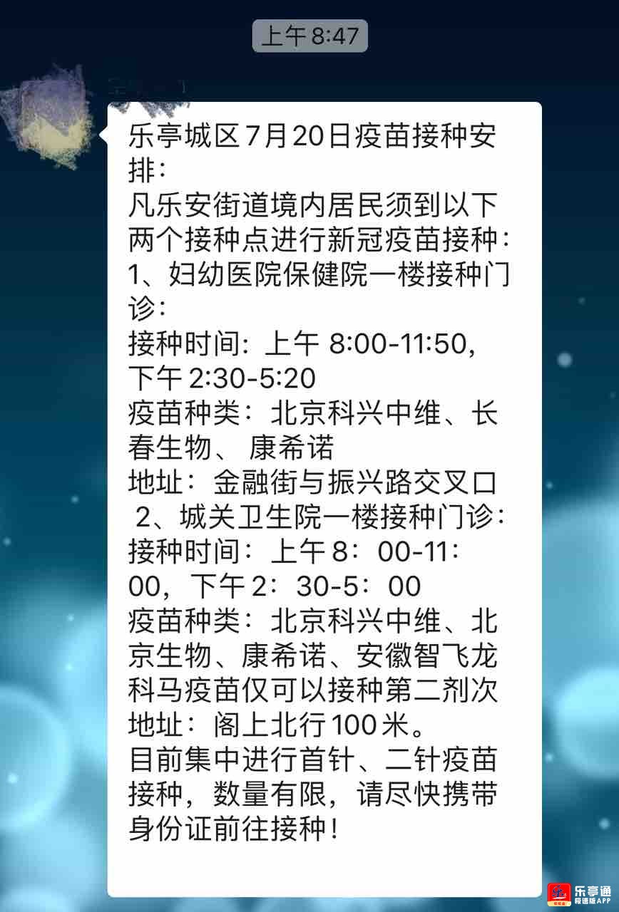 速看!乐亭城区7月20日疫苗接种安排,没打的抓紧了