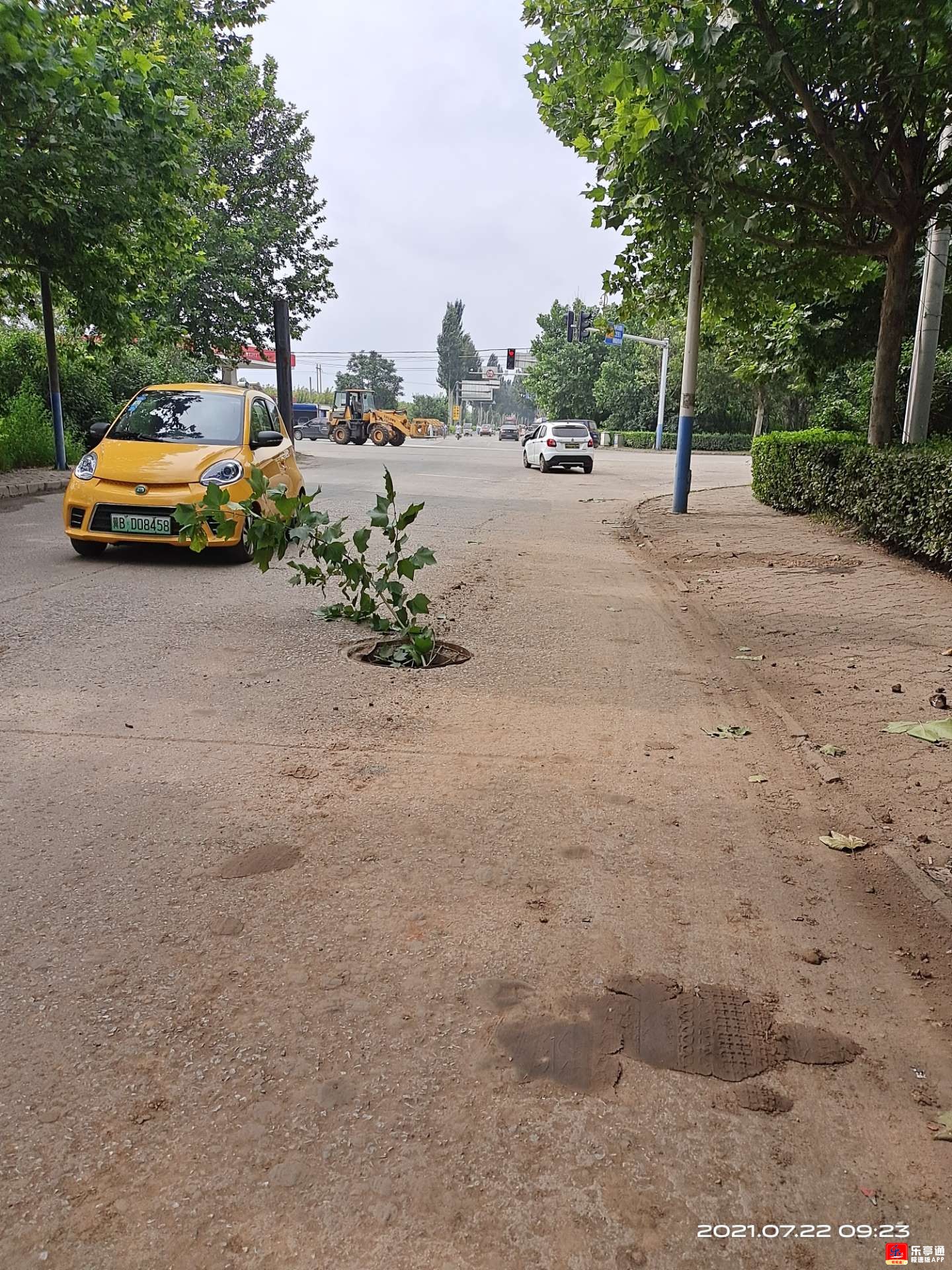 乐亭南外环十字路口以北,井盖压坏了,行人注意安全