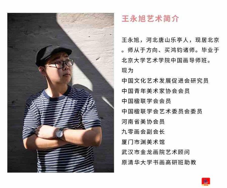 王永旭,河北唐山乐亭人,现居北京。师从于方向、买鸿钧诸师。毕业于北京大学艺术学院中国画导师班。现为中国文化艺术发展促进会研究员中国青年美术家协会会员中国楹联学会会员中国楹联学会艺术委员会委员河南省美协会员九零画会副会长厦门市渊美术馆武汉市金龙画院艺术顾问原清华大学书画高研班助教