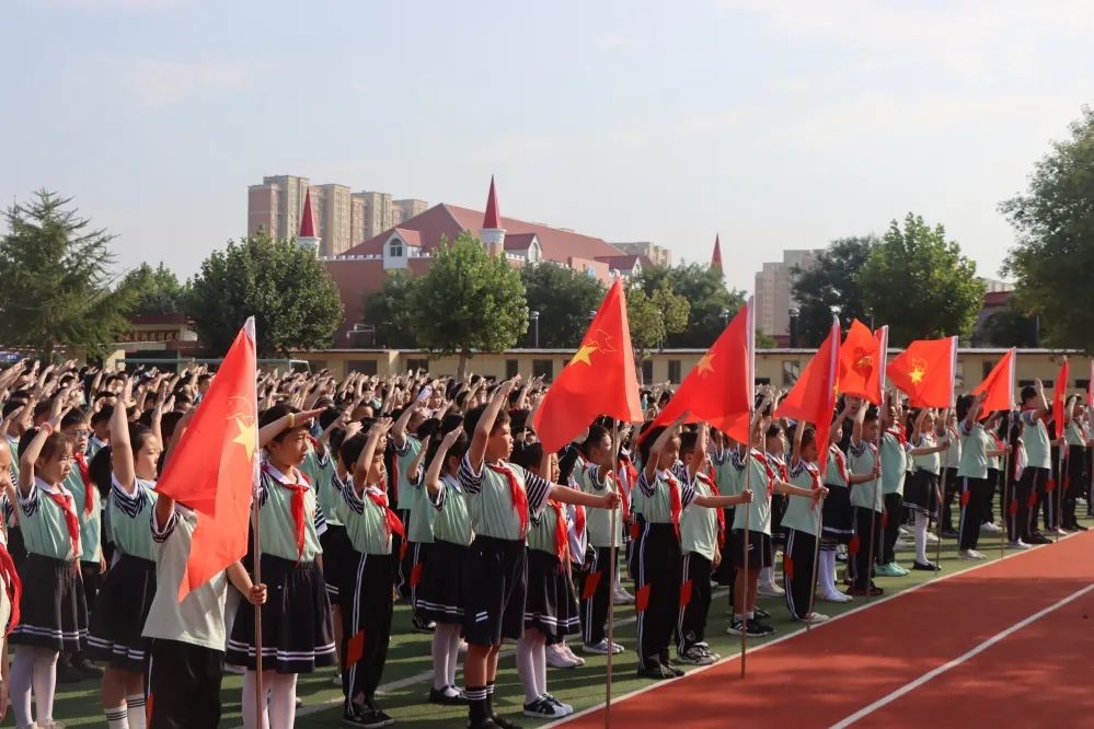 伴随着庄严的《义勇军进行曲》,五星红旗冉冉升起,学校的开学典礼拉开了帷幕。